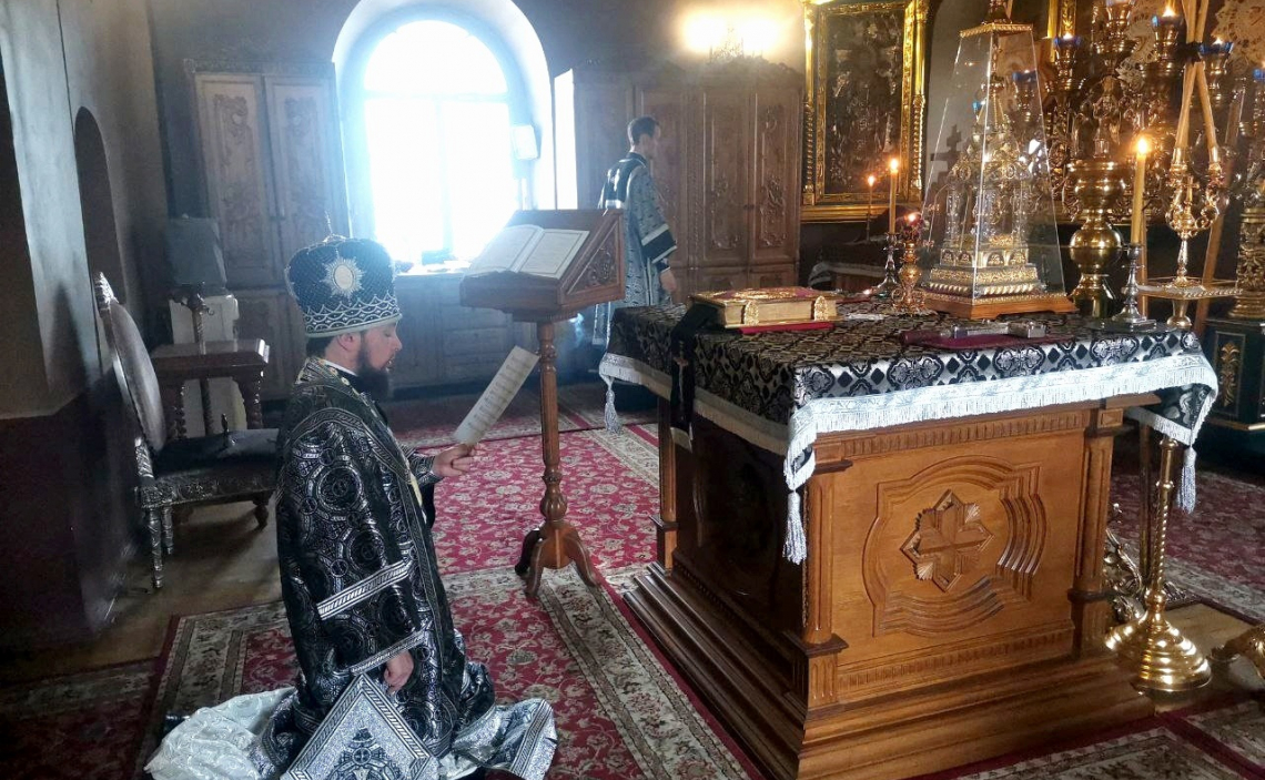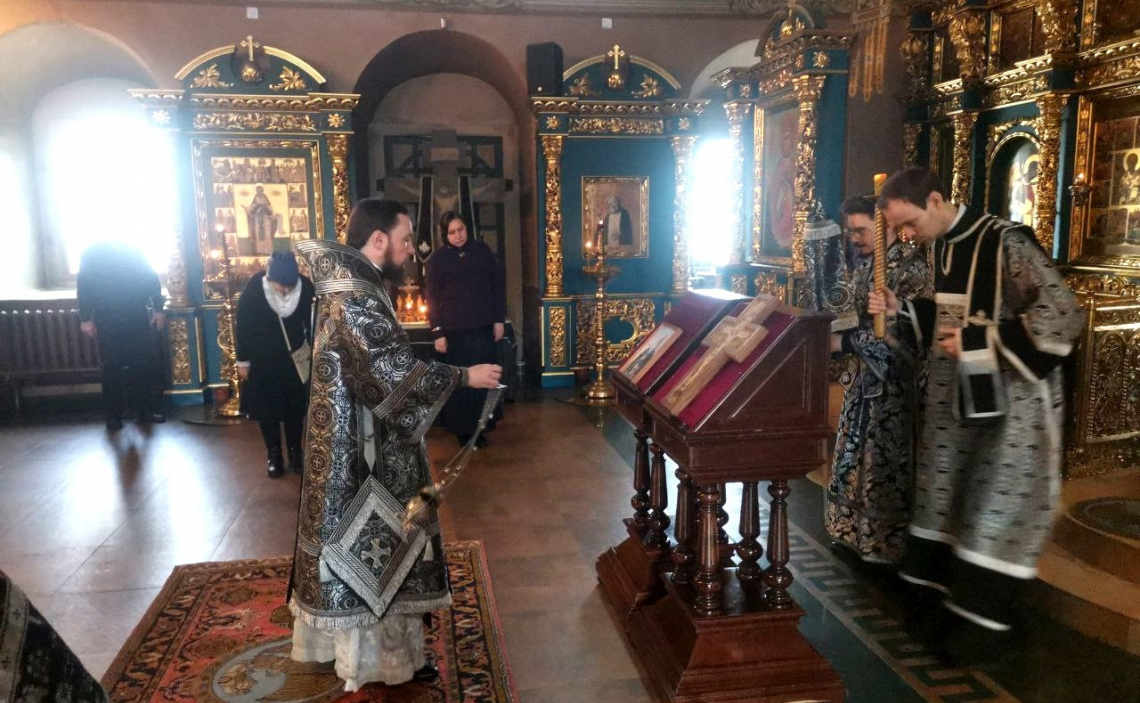 Перед началом вечерни с Литургией Преждеосвященных Даров в алтарь был занесен Крест, который в течение всей недели находился на аналое в центре собора для поклонения верующих.