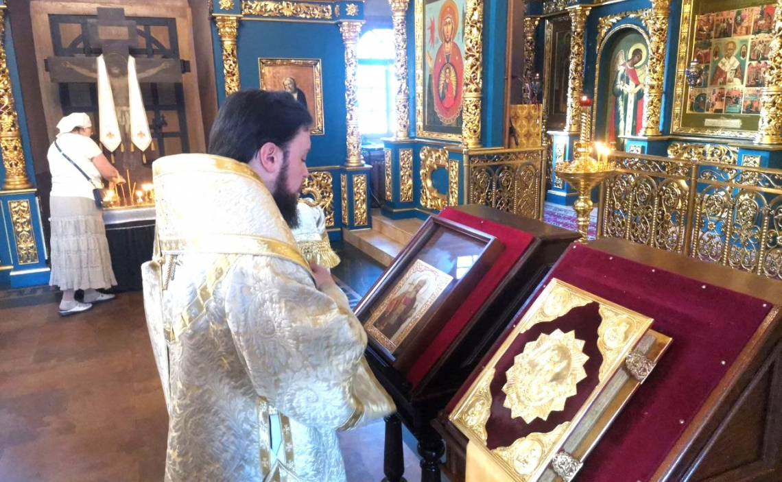 По окончании полиелея епископ Серафим совершил помазание елеем духовенства, а также прихожан, молившихся за Богослужением.
