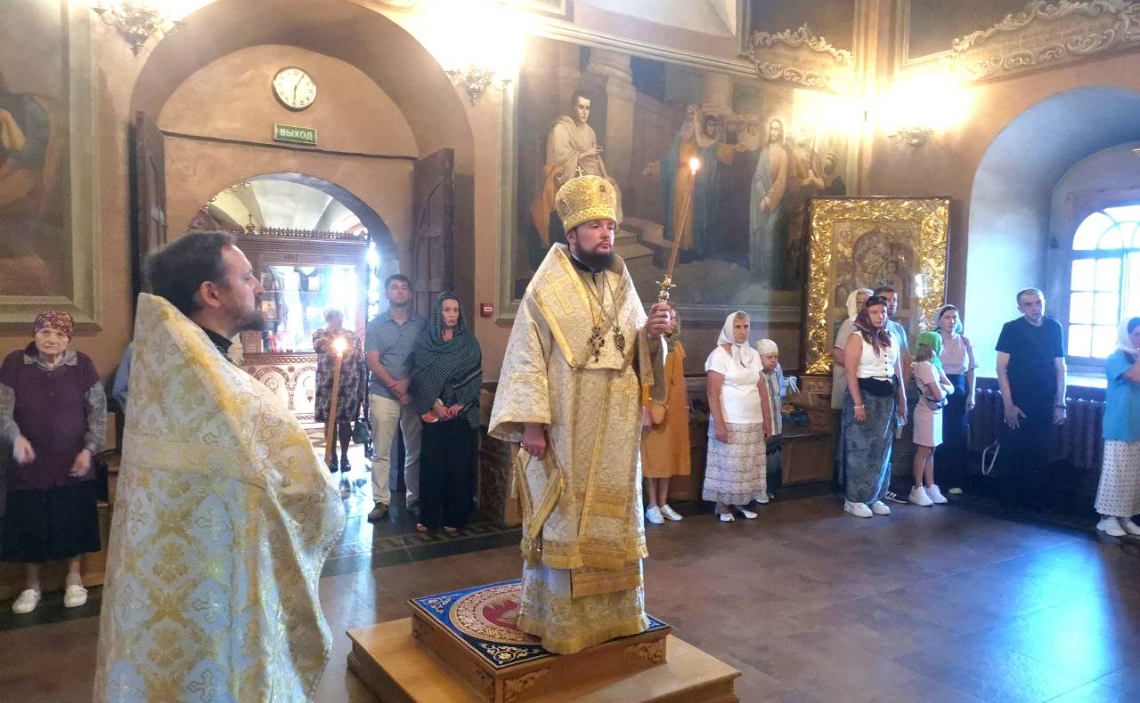 В канун Недели 5-й по Пятидесятнице епископ Истринский Серафим совершил всенощное бдение в Свято-Успенском соборе Крутицкого подворья