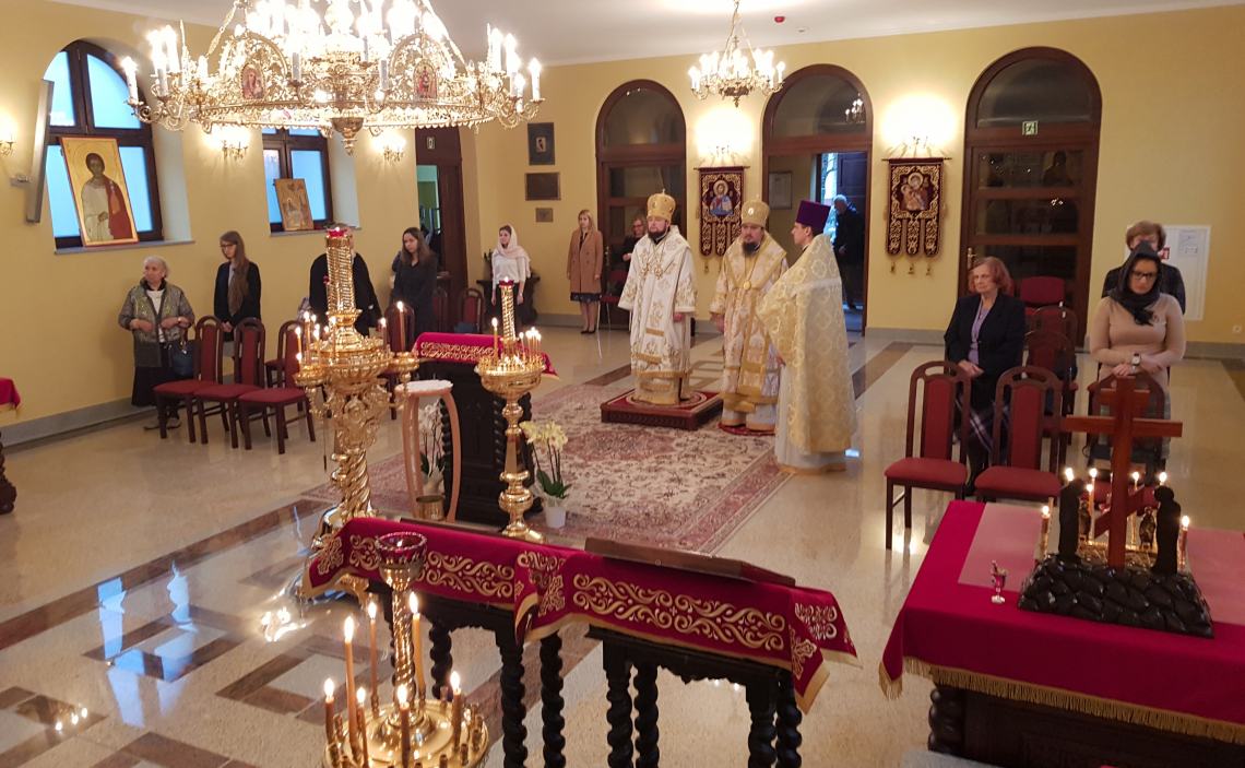 На следующий день, 21 ноября, в праздник Святого Архистратига Михаила и прочих Небесных Сил бесплотных, епископ Серафим совершил Божественную Литургию вместе с православным ординарием Войска польского архиепископом Вроцлавским и Щечинским Георгием в войсковом храме в честь Святого великомученика Георгия Победоносца в Варшаве. По окончании богослужения архиепископ Георгий тепло приветствовал епископа Серафима, как давнего друга Польской Православной Церкви, выразив ему наилучшие пожелания в архипастырском служении и научно-богословских трудах на благо развития духовных, богословских и культурных связей между Русской и Польской Православными Церквами. Со своей стороны епископ Серафим выразил сердечную благодарность архиепископу Георгию за возможность совместного служения Божественной Литургии, братского общения, а также обмена опытом в области межхристианского диалога, богословской рефлексии проблем современного общества, а также реализации европейских стандартов высшего образования.