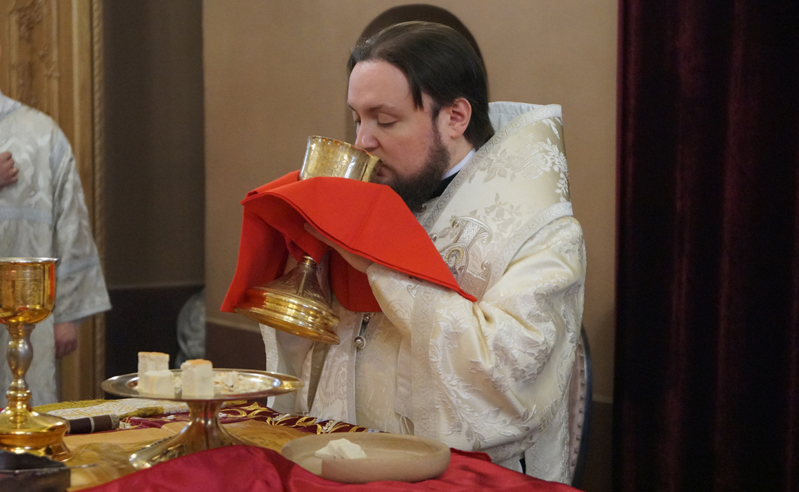 Его Преосвященству сослужил клир подворья.