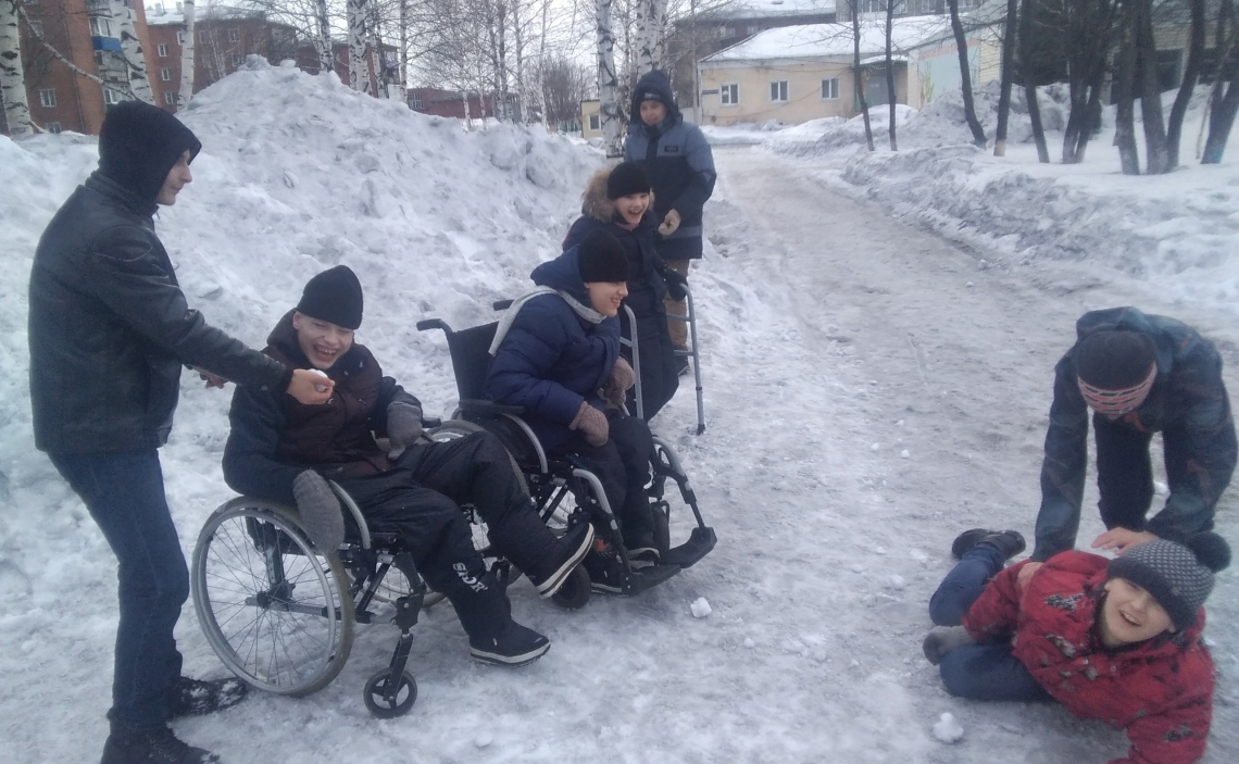 Ребятам было разрешено вывести на прогулку четырех воспитанников интерната. Следопыты помогли им одеться и устроили веселую прогулку. На улице следопыты организовали для ребят игры в снежки. Дети интересно провели время за дружеским общением и фотосъемкой.