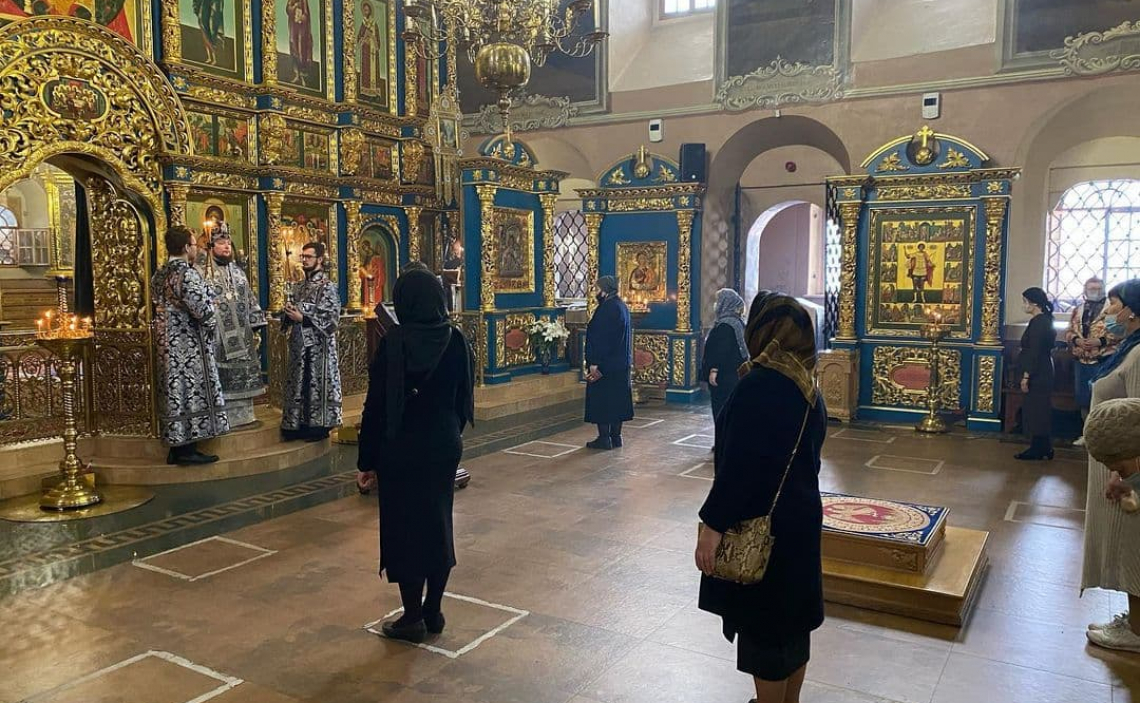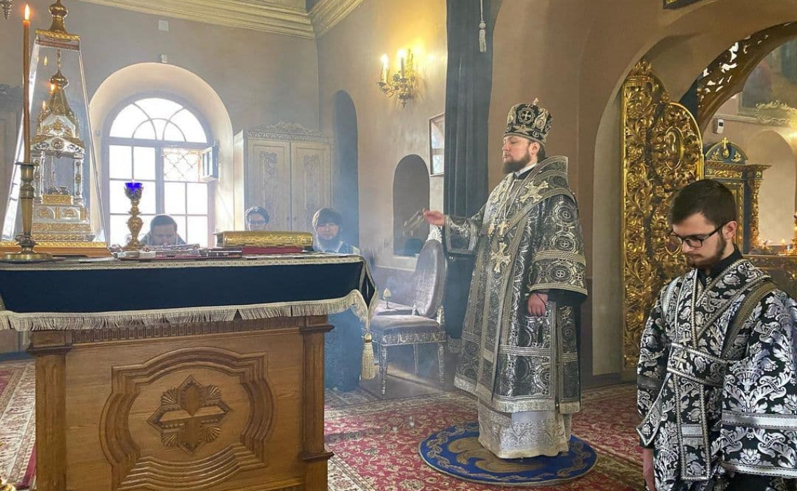 15 апреля, в Четверток Великого канона, Епископ Истринский Серафим совершил Литургию Преждеосвященных Даров в Свято-Успенском соборе Крутицкого подворья