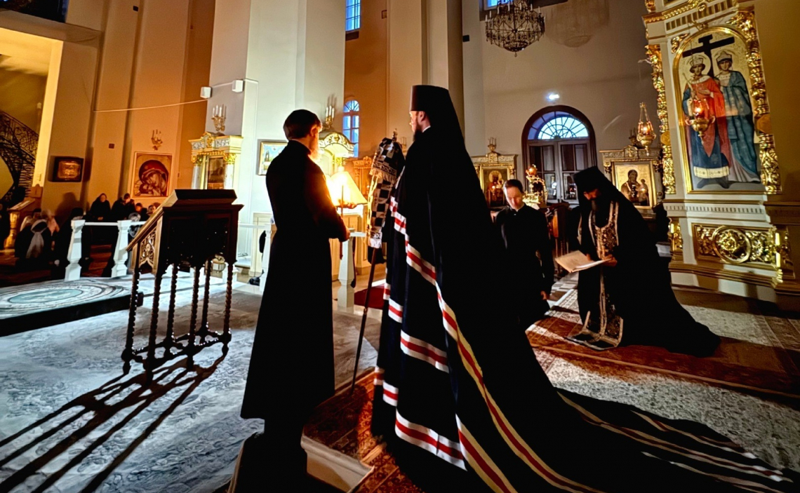 В Четверг Первой седмицы Великого поста епископ Истринский Серафим возглавил Великое повечерие с чтением Великого канона Преподобного Андрея Критского в Крестовоздвиженском Иерусалимском ставропигиальном женском монастыре