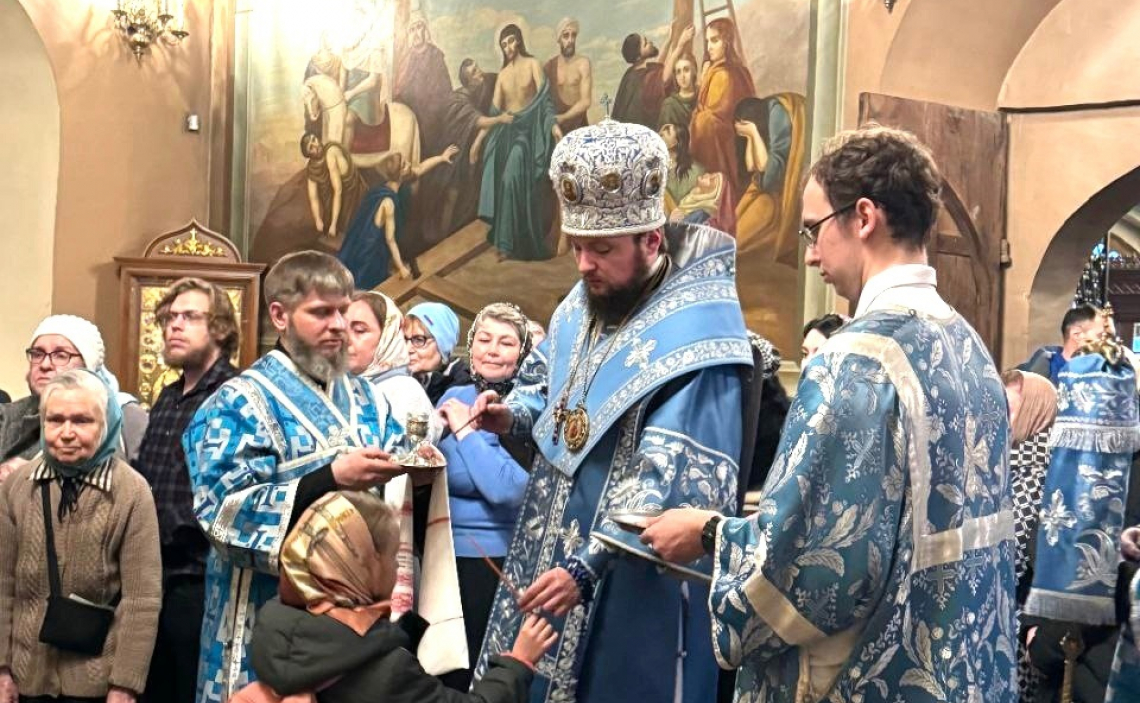 В канун праздника Благовещения Пресвятой Богородицы епископ Истринский Серафим совершил всенощное бдение в Свято-Успенском соборе Крутицкого подворья