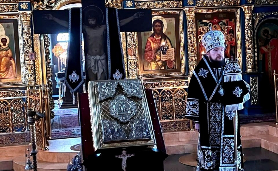 После акафиста епископ Серафим прочел главы из Евангелия, повествующие о Спасительных Страданиях Господа нашего Иисуса Христа.