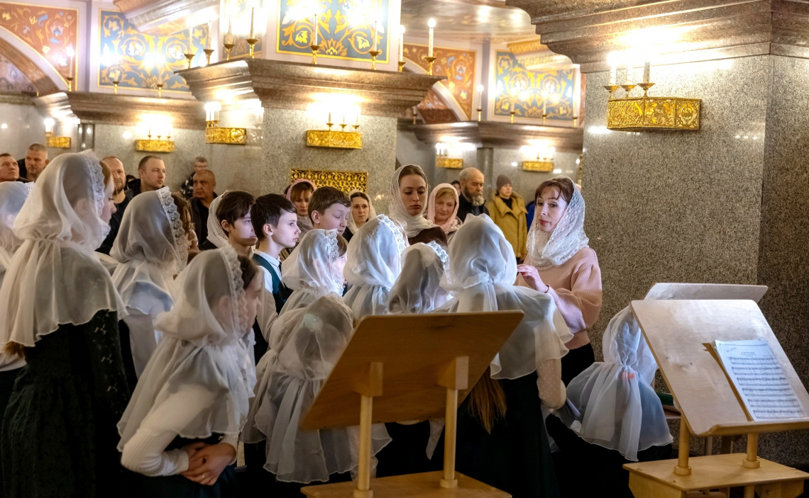 Пономарское служение, колокольный звон, богослужебные чтения и песнопения исполнили учащиеся воскресных школ и детской школы искусств.