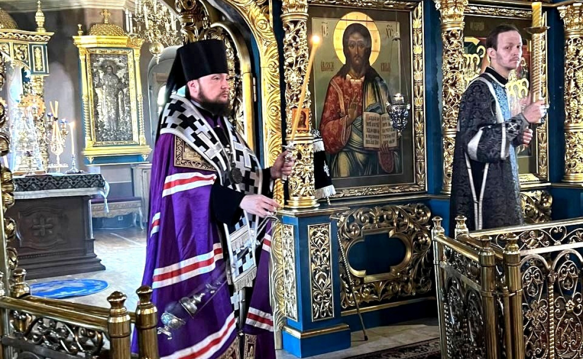 В Пятницу Страстной седмицы епископ Истринский Серафим совершил Великие (Царские) часы в Свято-Успенском соборе Крутицкого подворья