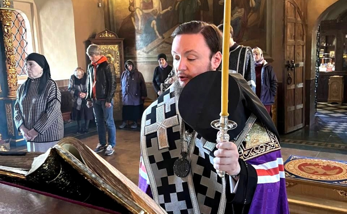3 мая 2024 года, в Великий Пяток, день, посвященный воспоминанию Святых Спасительных Страстей Господа нашего Иисуса Христа, председатель Синодального отдела по делам молодежи епископ Истринский Серафим совершил Великие (Царские) часы в Свято-Успенском соборе Крутицкого Патриаршего подворья.