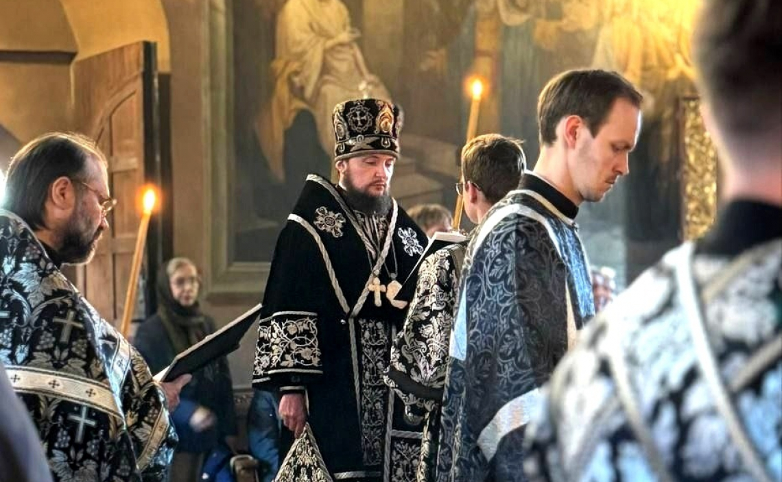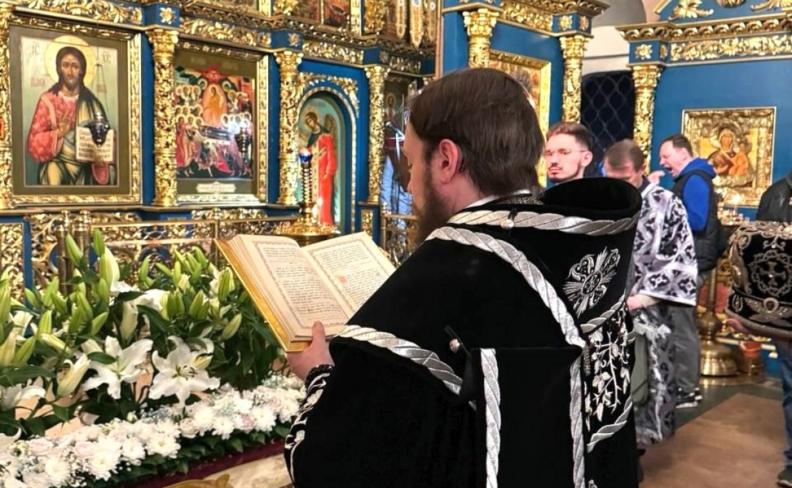 В канун Великой Субботы епископ Истринский Серафим совершил утреню с чином погребения Святой Плащаницы в Свято-Успенском соборе Крутицкого подворья