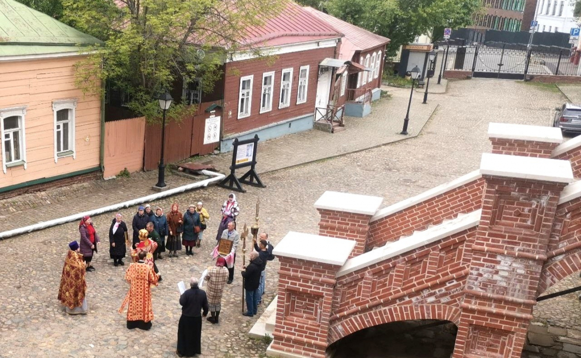 После Литургии вокруг Свято-Успенского собора Крутицкого подворья был совершен традиционный крестный ход, во время которого исполнялись праздничные песнопения, а верующие были окроплены святой водой.