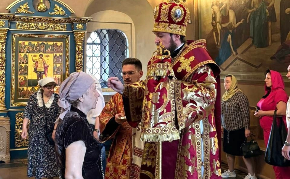 По окончании полиелея епископ Серафим совершил помазание елеем духовенства, а также прихожан, молившихся за Богослужением.