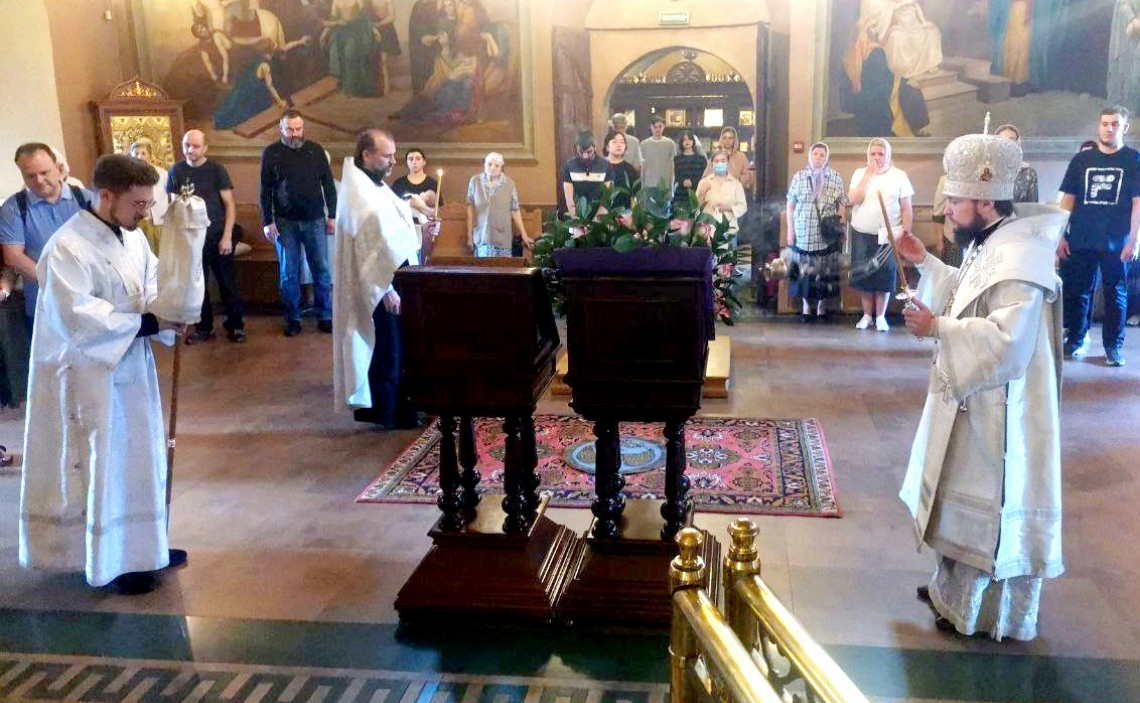 В канун Недели 7-й по Пасхе епископ Истринский Серафим совершил всенощное бдение в Свято-Успенском соборе Крутицкого подворья
