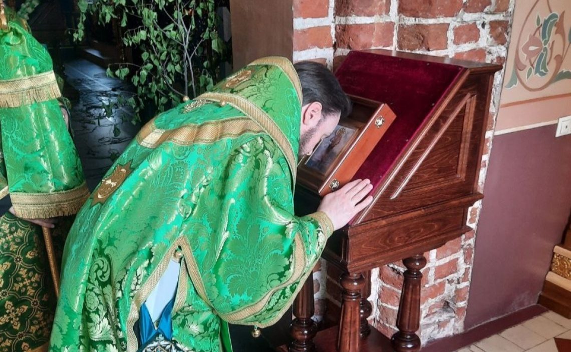 По завершении Литургии была прочитана молитва, пропеты тропарь, кондак и величание Святому Преподобному Онуфрию Великому.