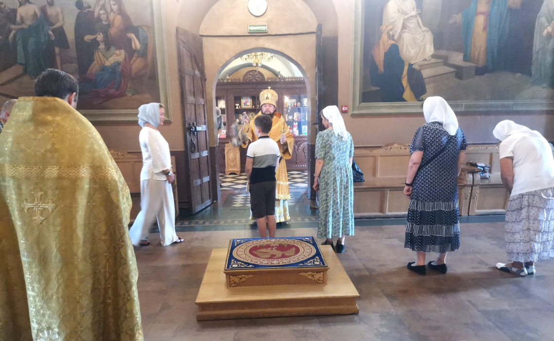 По окончании полиелея епископ Серафим совершил помазание елеем духовенства, а также прихожан, молившихся за Богослужением.