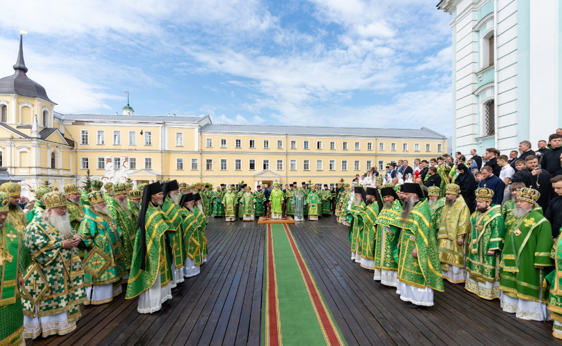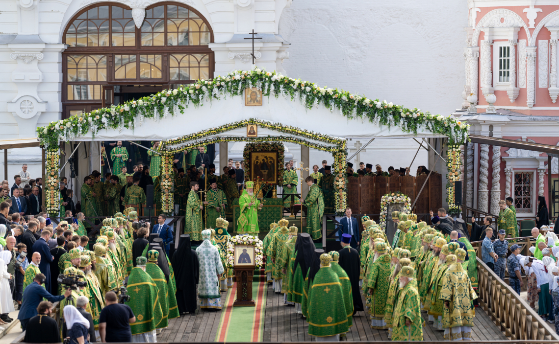 Торжественное богослужение совершалось перед чтимой иконой преподобного Сергия Радонежского. Для совершения праздничных всенощного бдения и Божественной литургии на Соборной площади был устроен помост, а перед Успенским собором лавры – престол под сенью.