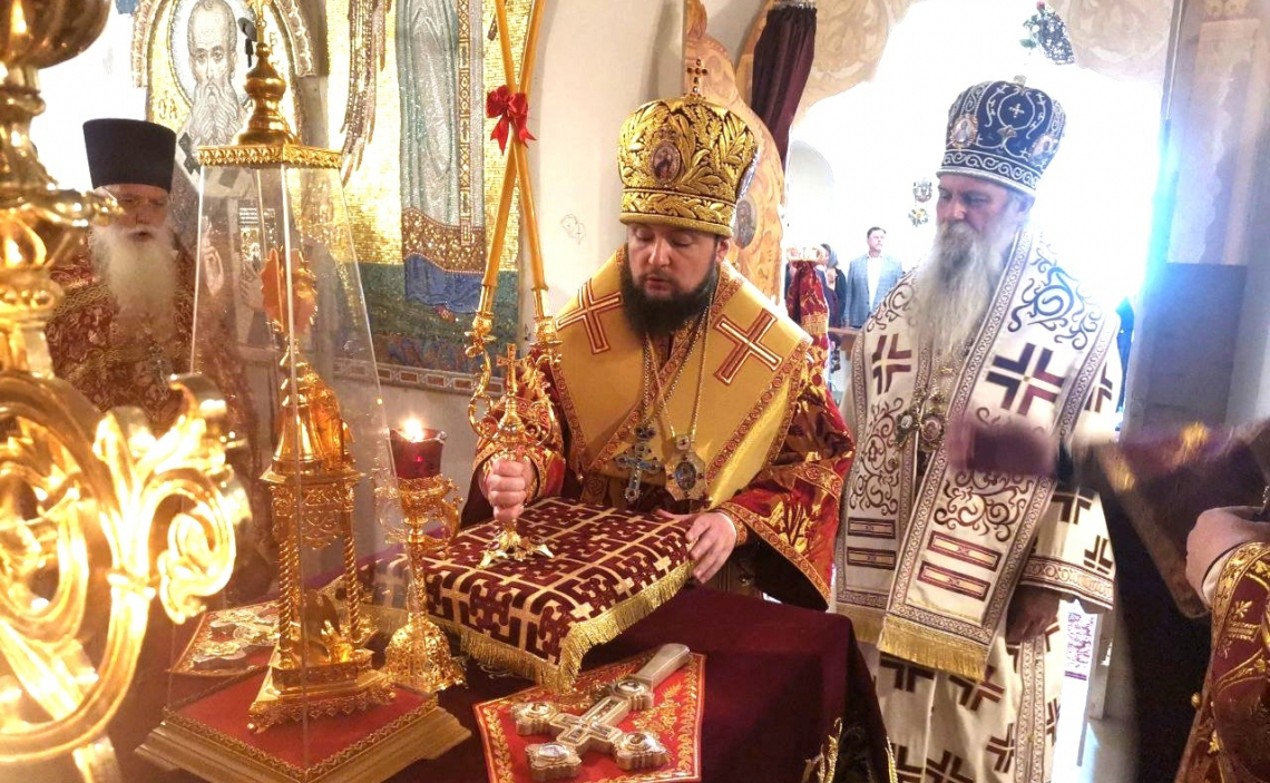 В богослужении приняли участие: находящийся в России с частным визитом иерарх Сербского Патриархата епископ Славонский Иоанн; благочинный Иверского церковного округа, настоятель храма Святого Пророка Божия Илии на Новгородском подворье протоиерей Андрей Речицкий; настоятель храма Всемилостивого Спаса бывшего Скорбященского монастыря протоиерей Александр Ильяшенко; настоятель Патриаршего подворья храмов в Зарядье, что в Китай-городе, протоиерей Вячеслав Шестаков, московское духовенство.