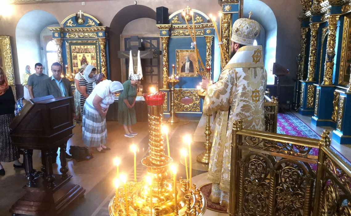 В Неделю 8-ю по Пятидесятнице епископ Истринский Серафим совершил Божественную Литургию в Свято-Успенском соборе Крутицкого подворья