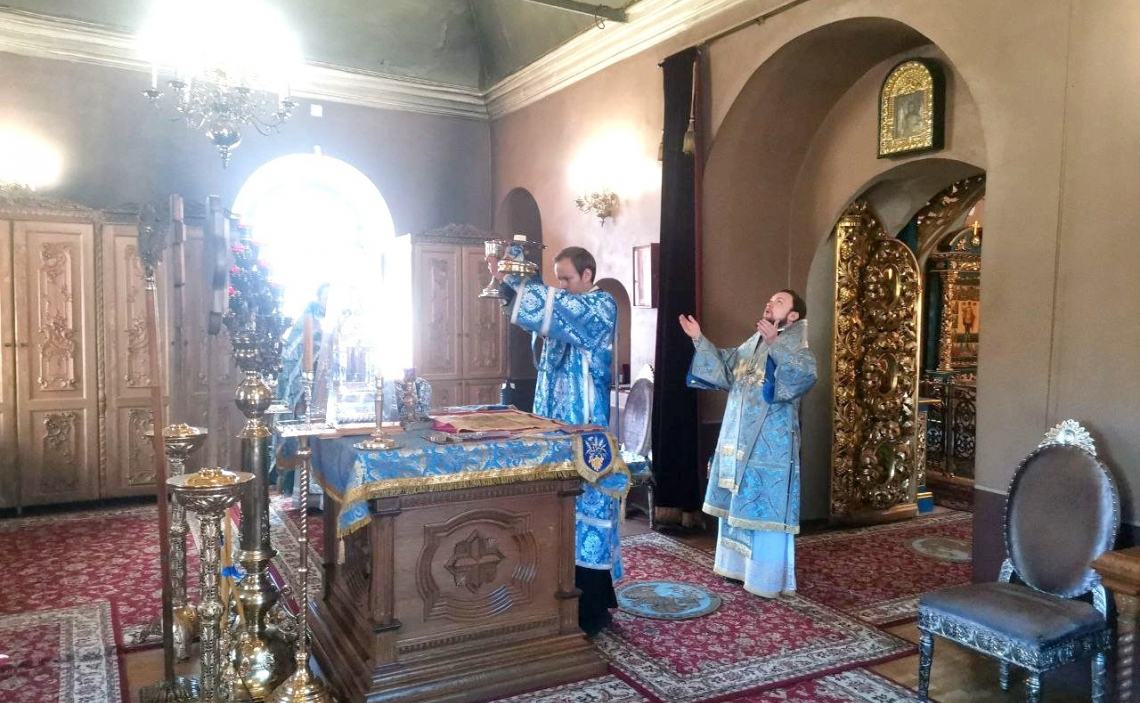 На утрени Владыка возглавил полиелей и великое славословие, а за Литургией по сугубой ектении вознес молитву о восстановлении мира.