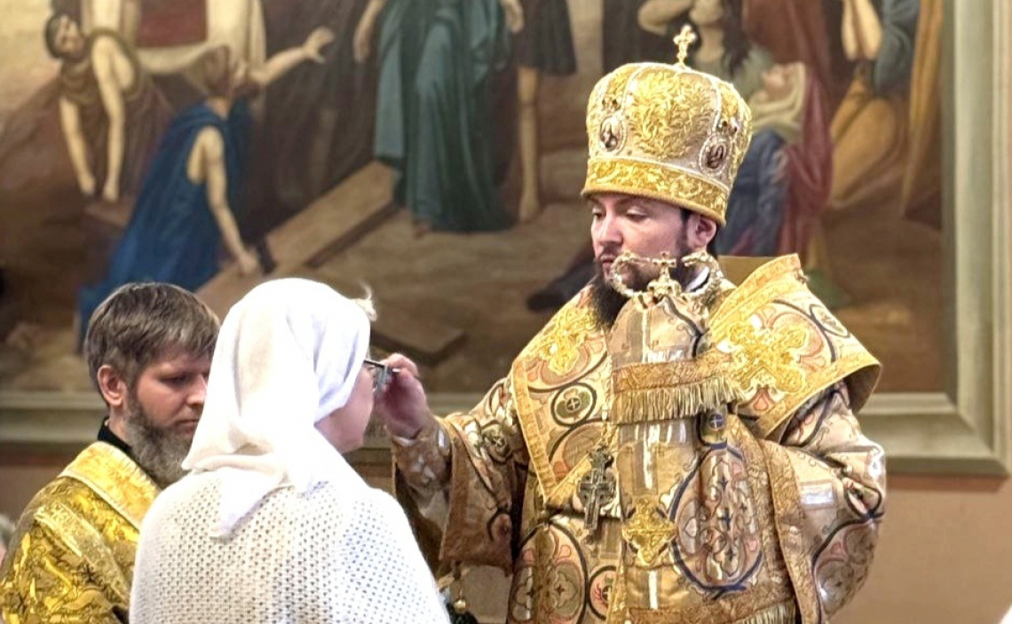По окончании полиелея епископ Серафим совершил помазание елеем духовенства, а также прихожан, молившихся за Богослужением.