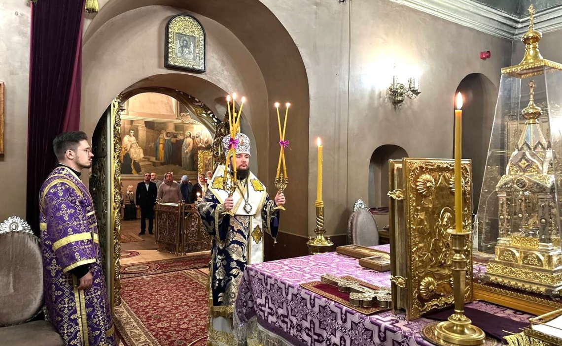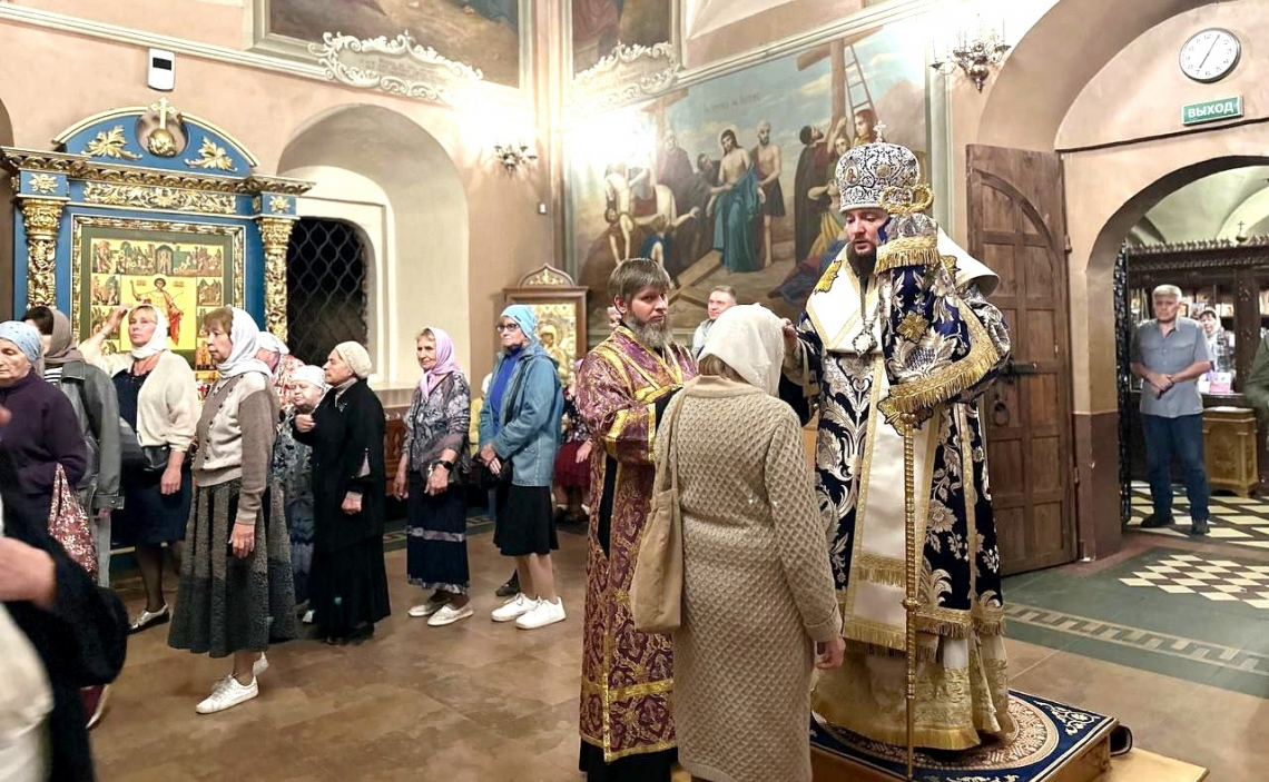 В канун праздника Воздвижения Честного и Животворящего Креста Господня епископ Истринский Серафим совершил всенощное бдение в Свято-Успенском соборе Крутицкого подворья