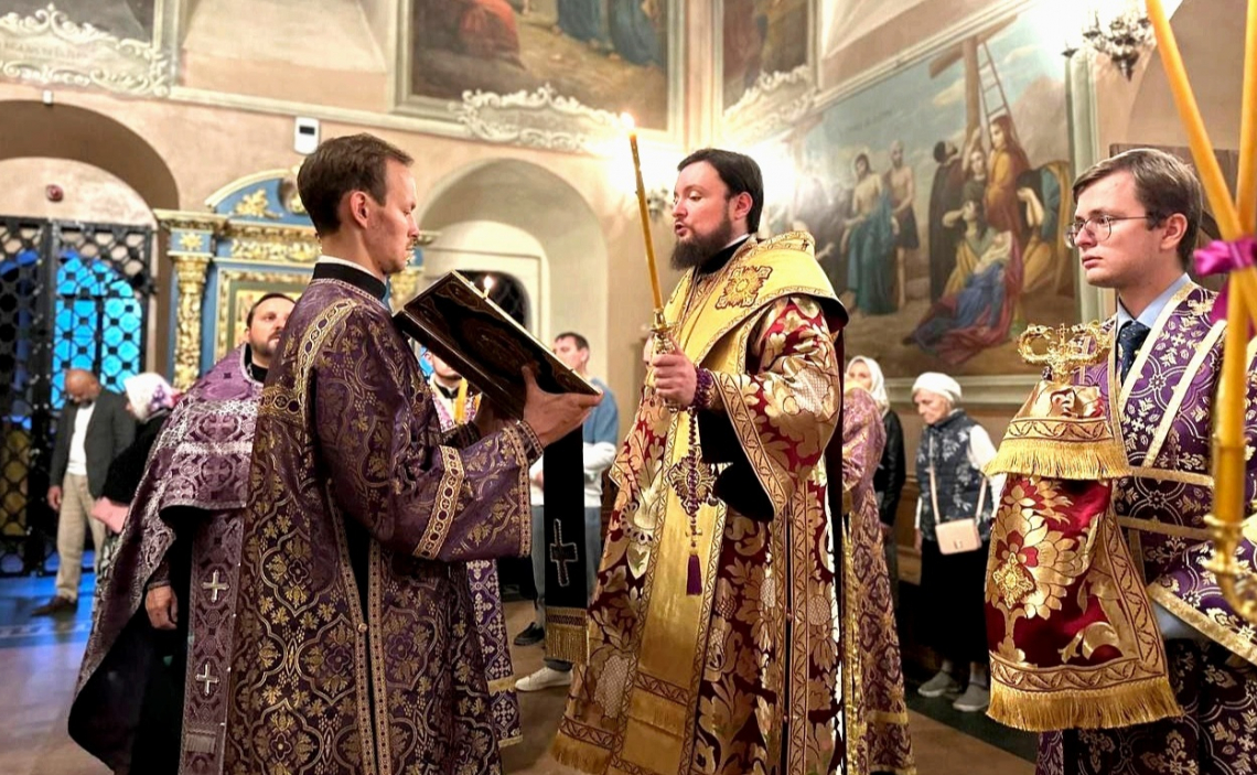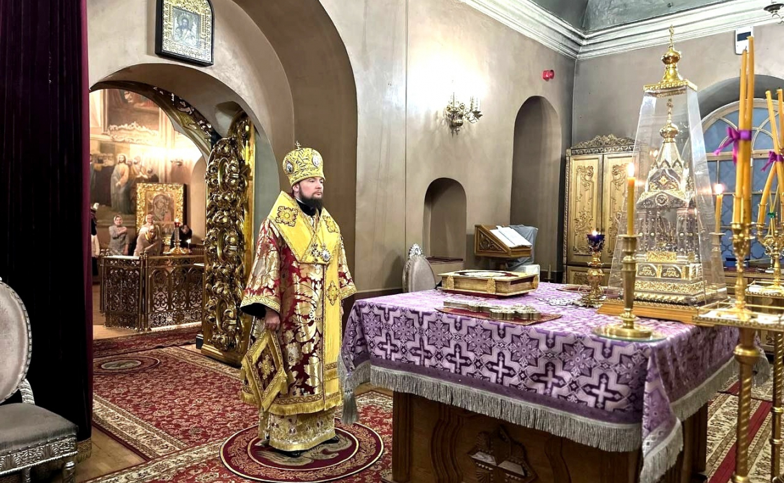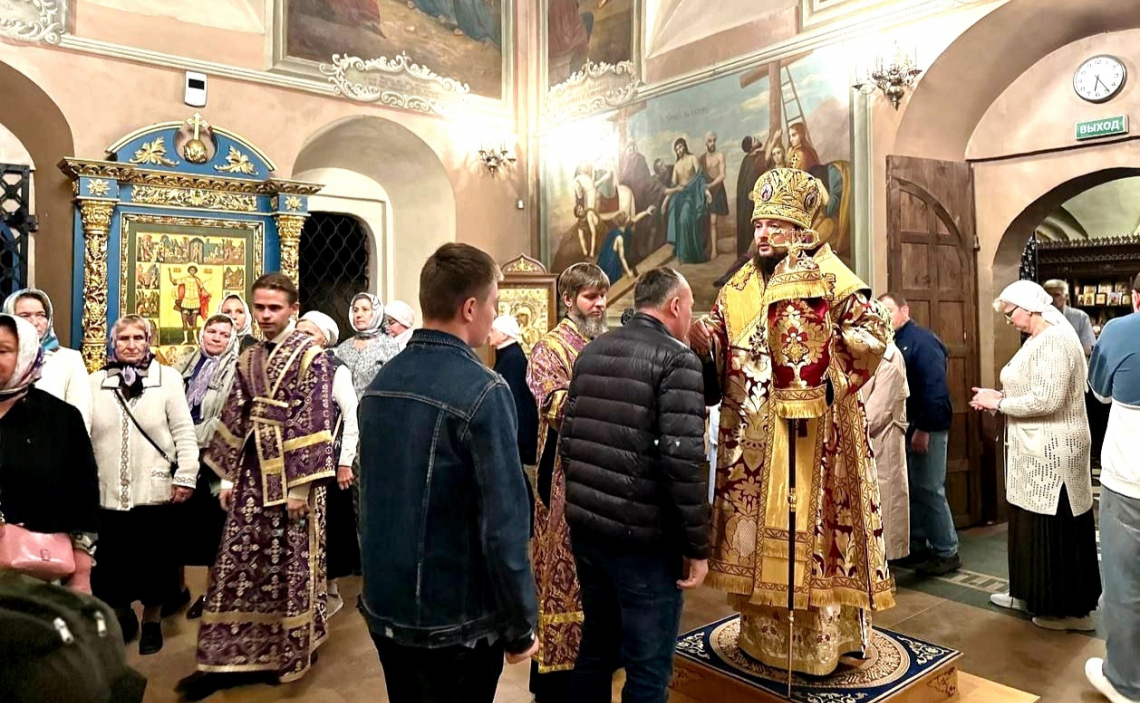 В канун Недели 14-й по Пятидесятнице епископ Истринский Серафим совершил всенощное бдение в Свято-Успенском соборе Крутицкого подворья