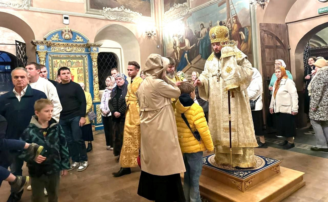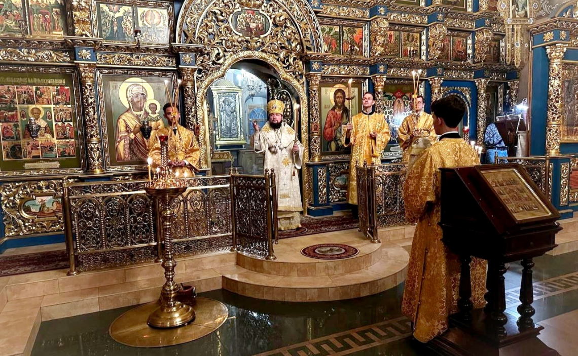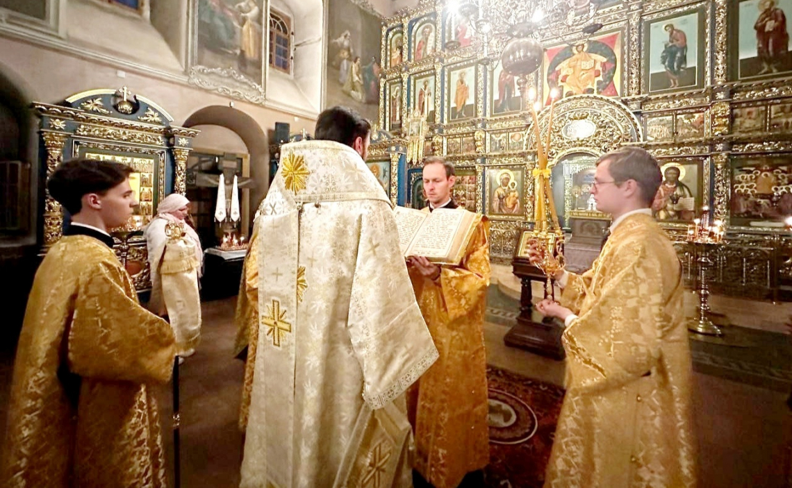 В канун Недели 15-й по Пятидесятнице епископ Истринский Серафим совершил всенощное бдение в Свято-Успенском соборе Крутицкого подворья