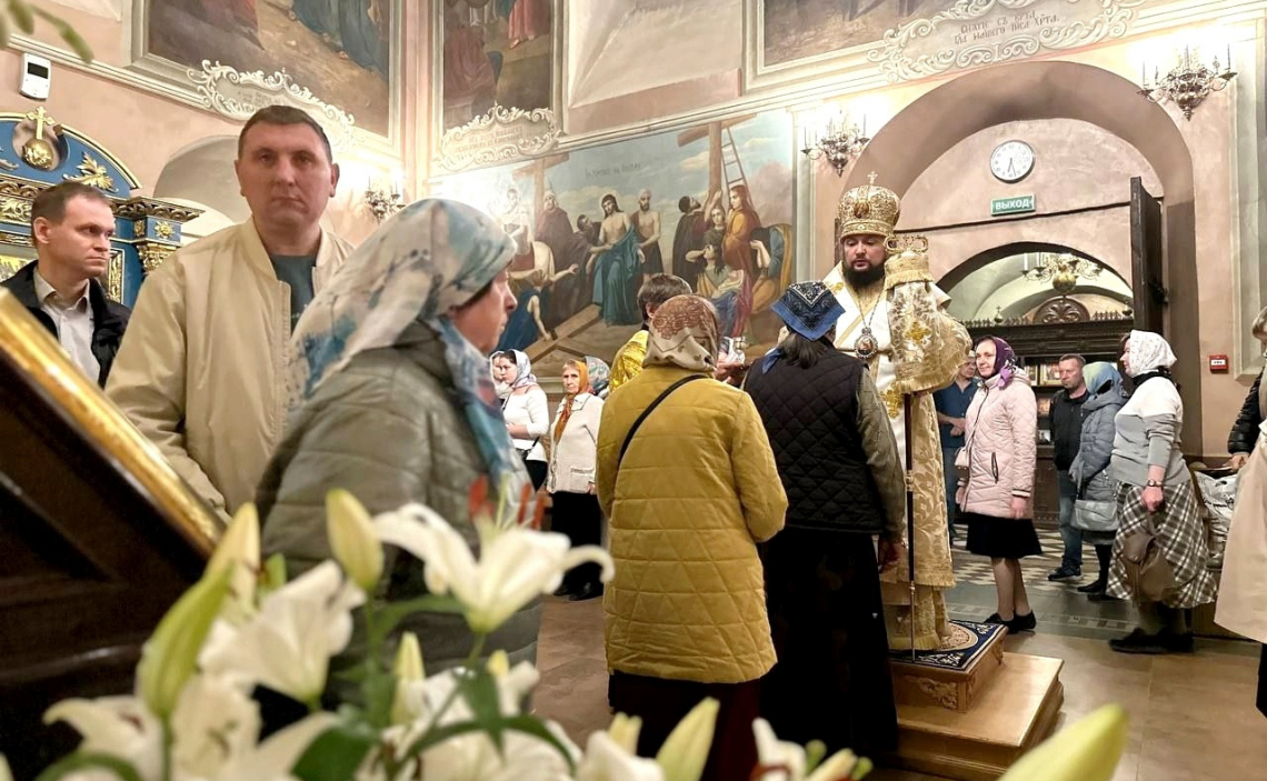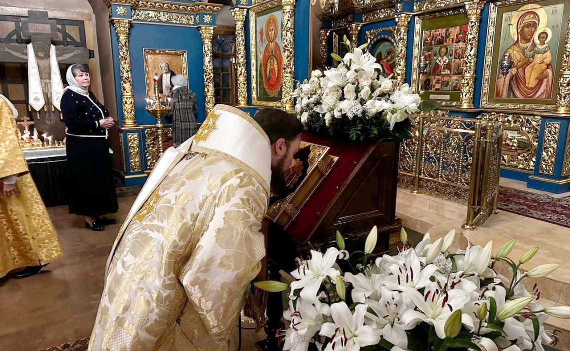 По окончании полиелея епископ Серафим совершил помазание елеем духовенства, а также прихожан, молившихся за Богослужением.