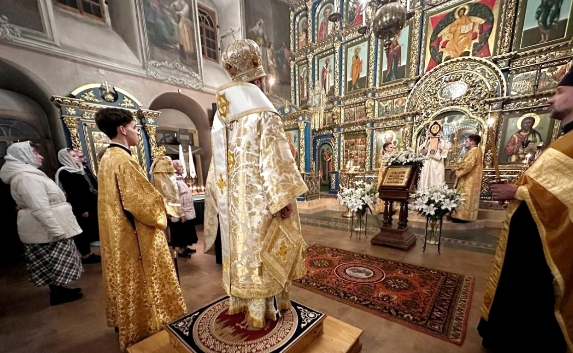 В канун Недели 16-й по Пятидесятнице епископ Истринский Серафим совершил всенощное бдение в Свято-Успенском соборе Крутицкого подворья