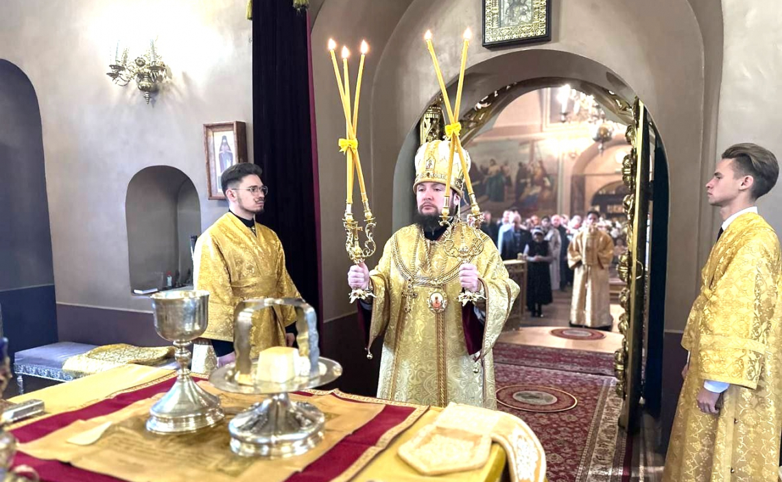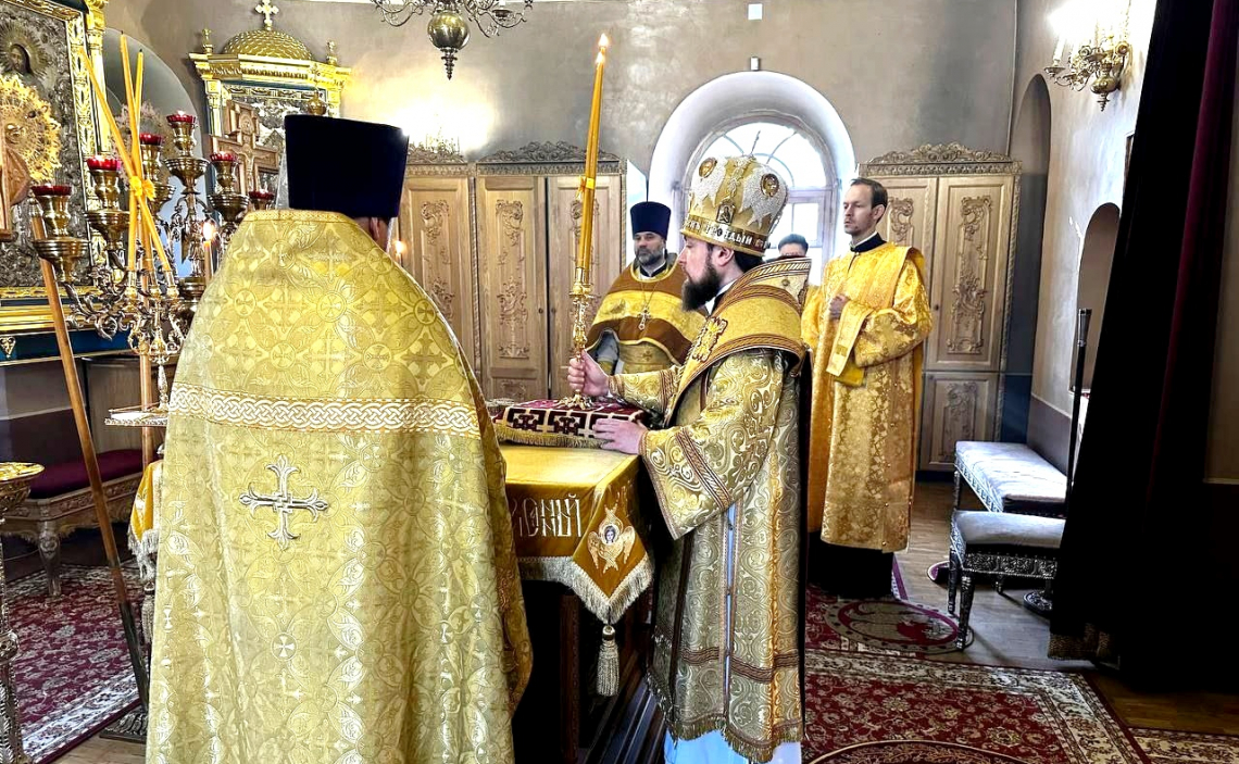 В Неделю 17-ю по Пятидесятнице епископ Истринский Серафим совершил Божественную Литургию в Свято-Успенском соборе Крутицкого подворья