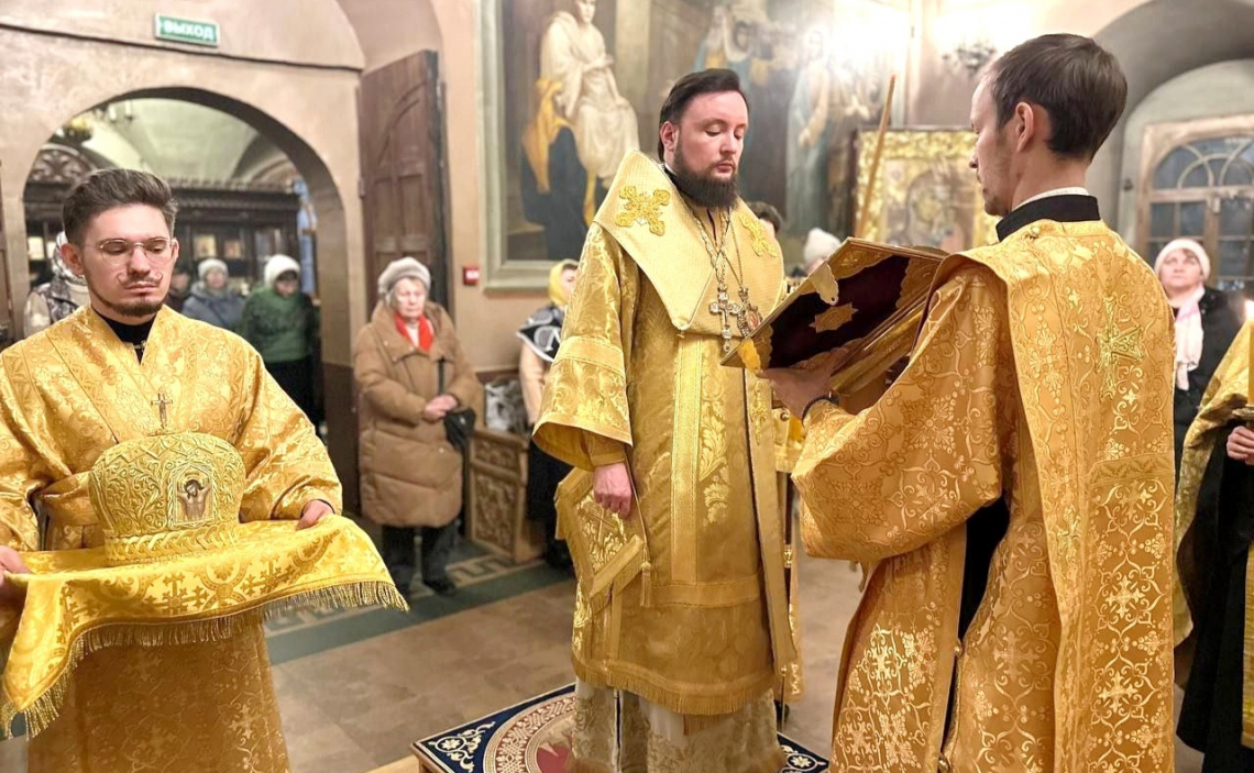 В канун Недели 19-й по Пятидесятнице епископ Истринский Серафим совершил всенощное бдение в Свято-Успенском соборе Крутицкого подворья