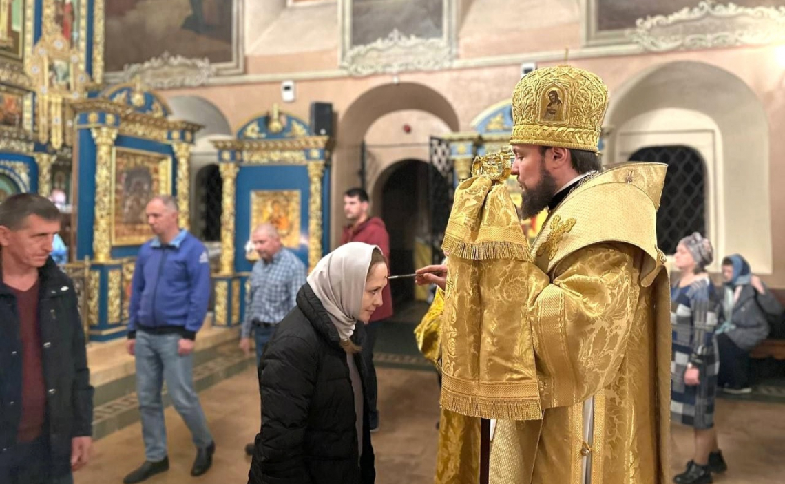 По окончании полиелея епископ Серафим совершил помазание елеем духовенства, а также прихожан, молившихся за Богослужением.