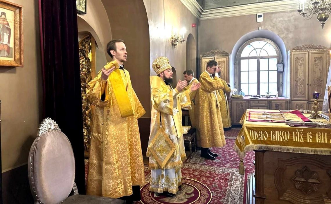 В Неделю 21-ю по Пятидесятнице епископ Истринский Серафим совершил Божественную Литургию в Свято-Успенском соборе Крутицкого подворья