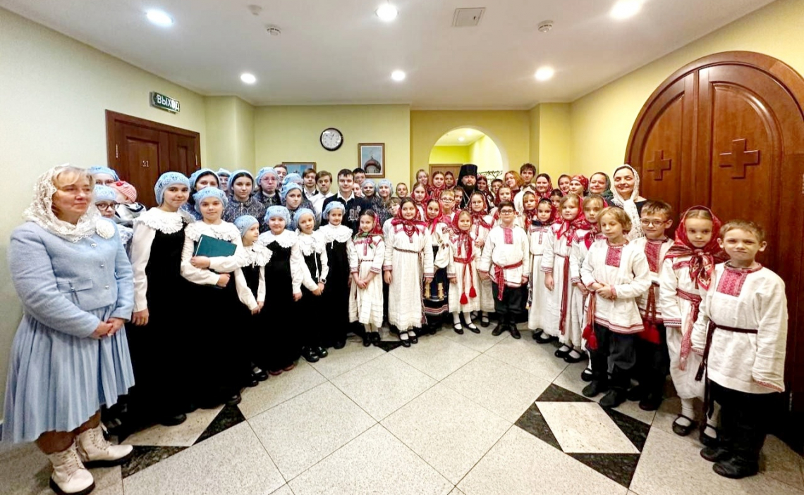 Затем хоровой коллектив воскресной школы представил концерт в честь престольного торжества, по окончании которого ребята получили из рук Владыки шоколад.