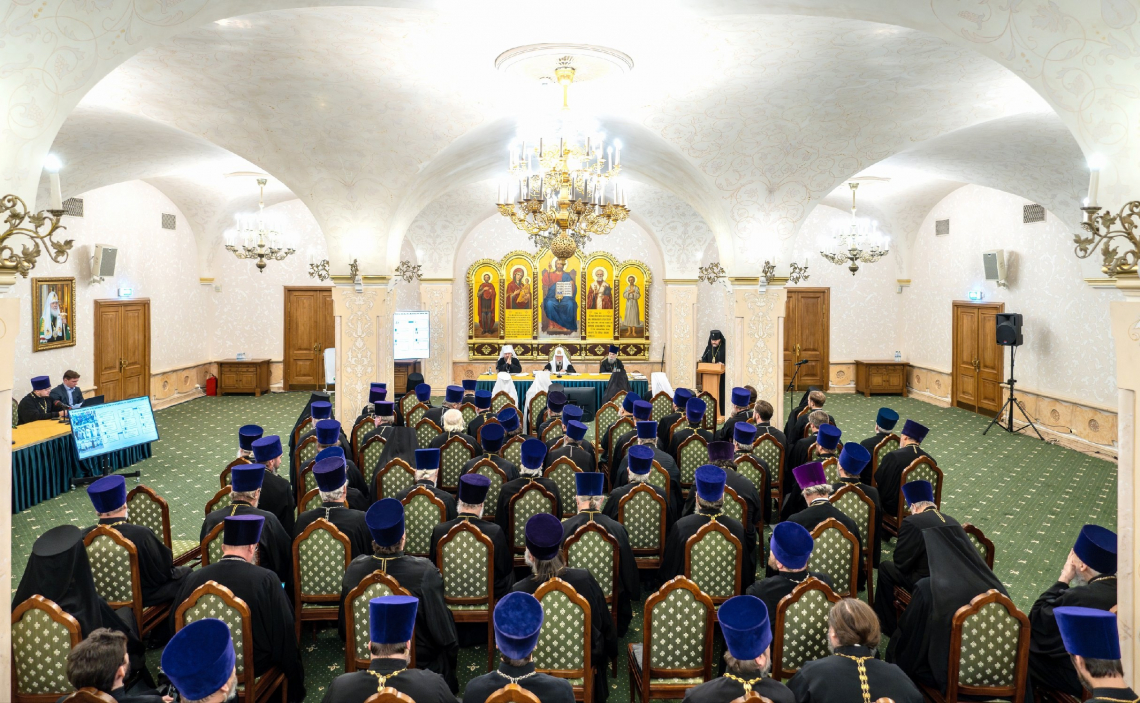 Протоиерей Михаил Рязанцев представил сообщение о проекте вопросника для годового отчета приходов и Патриарших подворий за 2024 год, а также отчет о работе Церковного суда.