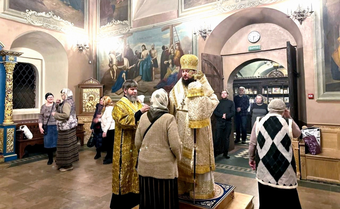 В канун Недели 25-й по Пятидесятнице епископ Истринский Серафим совершил всенощное бдение в Свято-Успенском соборе Крутицкого подворья