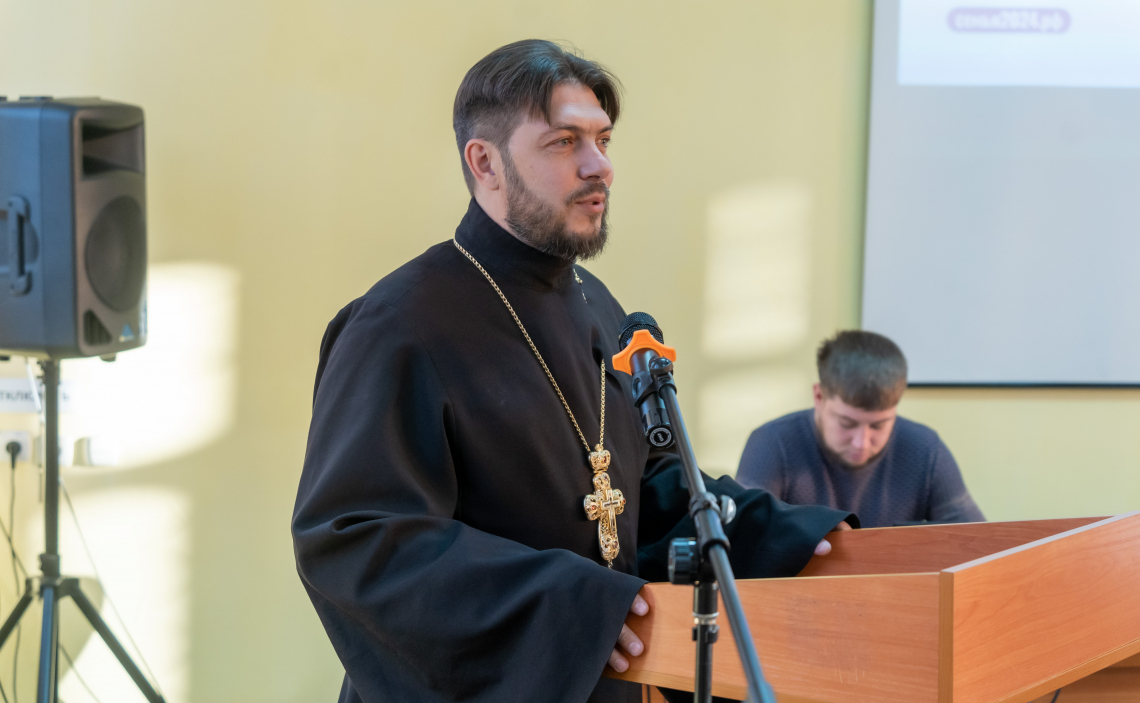 На пленарном заседании, которое состоялось 17 декабря в МАОУ ДПО «Институт повышения квалификации», выступил проректор по общим и социальным вопросам Кузбасской православной духовной семинарии протоиерей Алексей Нагорный, который рассказал о роли национальных духовных ценностей в воспитании молодого поколения.