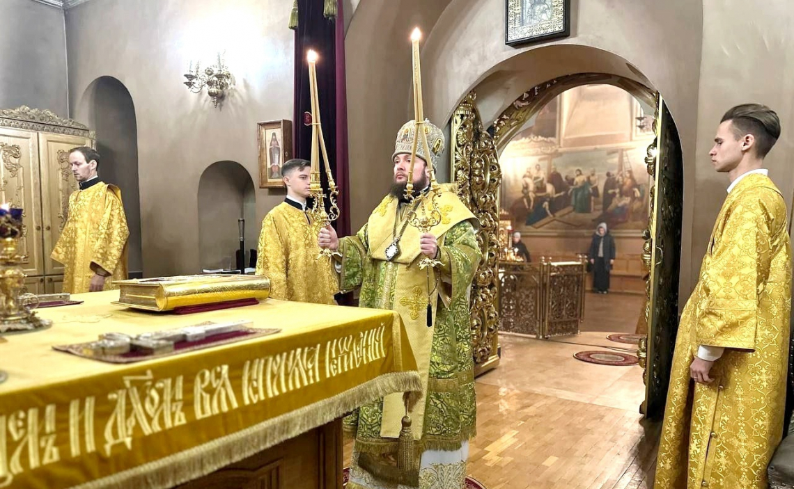 В канун Недели 27-й по Пятидесятнице епископ Истринский Серафим совершил всенощное бдение в Свято-Успенском соборе Крутицкого подворья