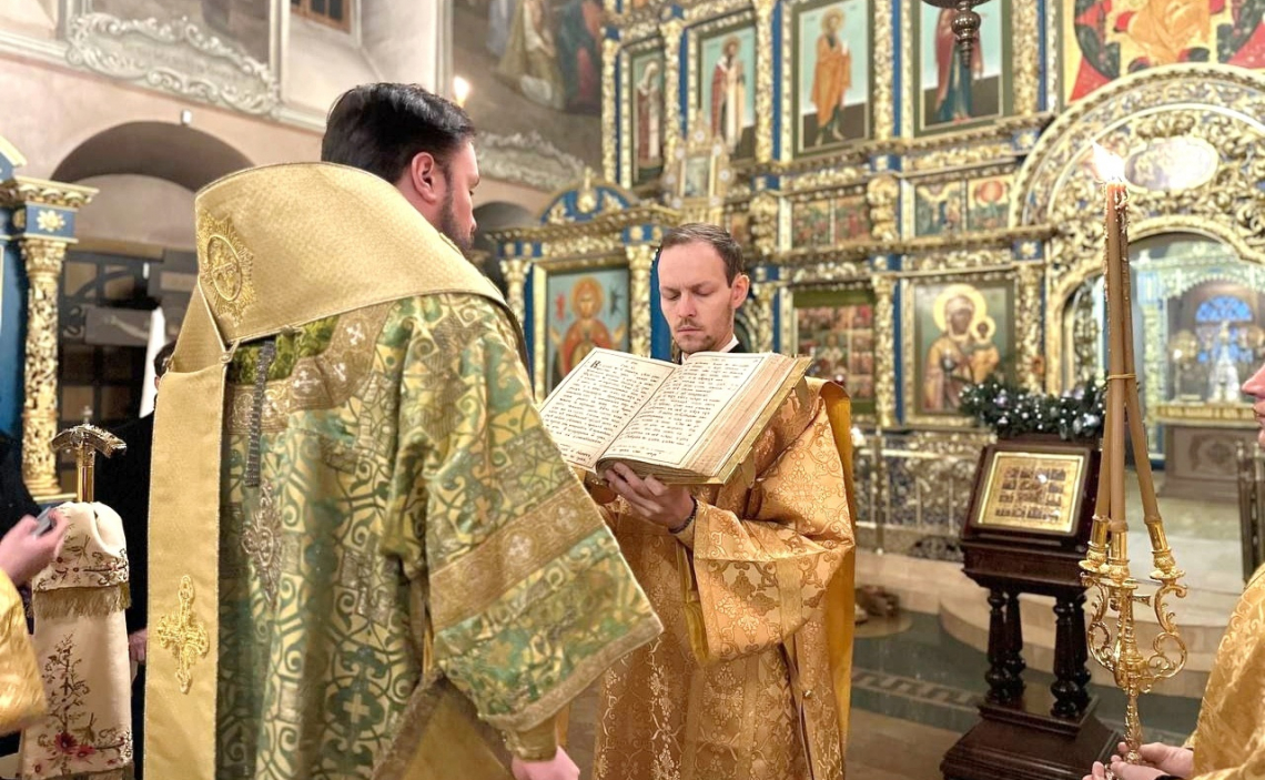 Вечером 28 декабря 2024 года, в канун Недели 27-й по Пятидесятнице, председатель Синодального отдела по делам молодежи епископ Истринский Серафим совершил всенощное бдение в Свято-Успенском соборе Крутицкого Патриаршего подворья.