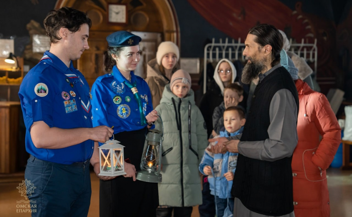 26 декабря Хранители огня Омского отделения Братства православных следопытов скаут-инструктор Диана Кошекова и старший следопыт 3 разряда Никита Мельников доставили Вифлеемский огонь в епархиальную резиденцию митрополита Омского и Таврического Дионисия. Там же состоялась встреча владыки с участниками движения.