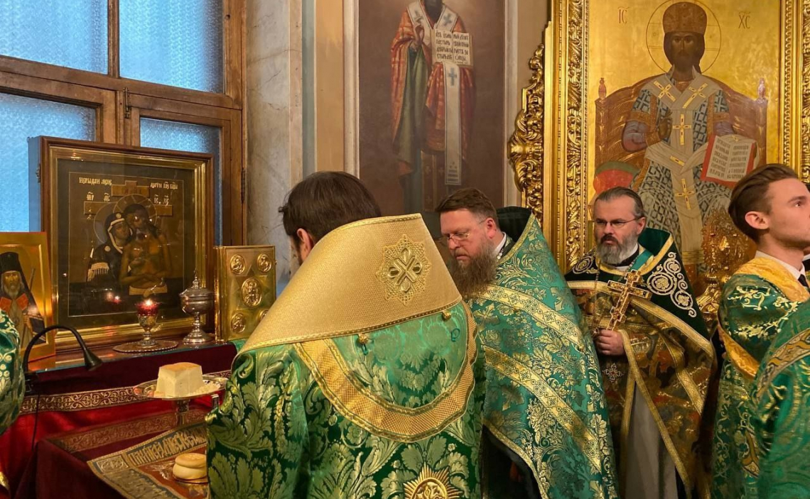 Его Преосвященству сослужили настоятель храма, представитель Православной Церкви Чешских земель и Словакии при Московском Патриаршем престоле архимандрит Серафим (Шемятовский); настоятель храма Святой Великомученицы Екатерины на Всполье, представитель Православной Церкви в Америке при Московском Патриаршем престоле протоиерей Даниил Андреюк; клирик подворья иеромонах Александр (Галушка); приглашенное духовенство.