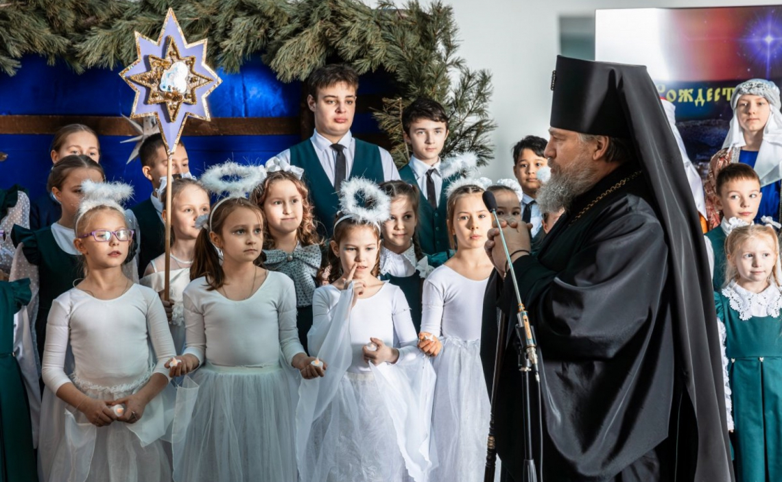 С приветственным словом к участникам и зрителям обратился архиепископ Иоанн. Он поблагодарил преподавателей и воспитанников воскресной школы за их труд и творчество, а также поздравил всех с Рождеством Христовым, пожелав радости, мира и благословения.