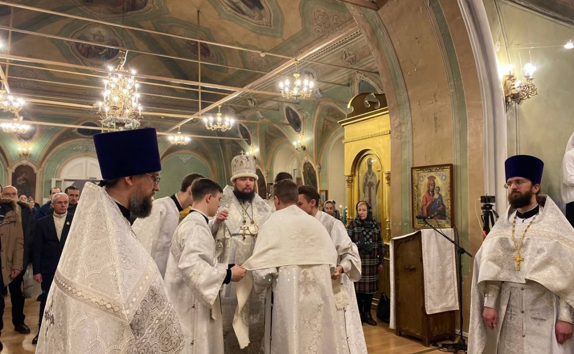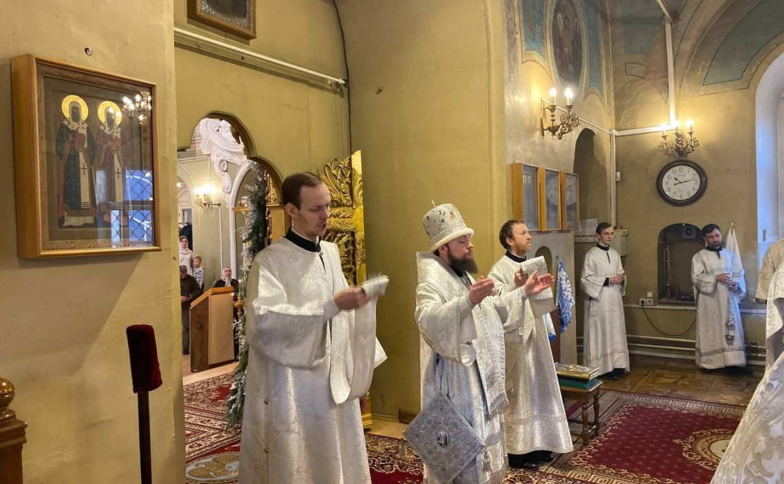 Его Преосвященству сослужили благочинный Иверского округа протоиерей Андрей Речицкий, настоятель храма Богоявления Господня протоиерей Андрей Нефедов, столичное духовенство.