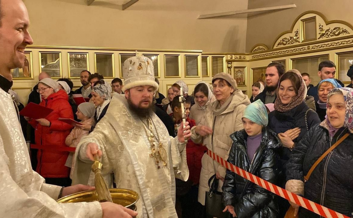По возвращении в храм епископ Серафим передал духовенству и верующим поздравления от Святейшего Патриарха Кирилла, а также сердечно поблагодарил отца благочинного, настоятеля храма, хор и всех участников богослужения за радость совместной молитвы.