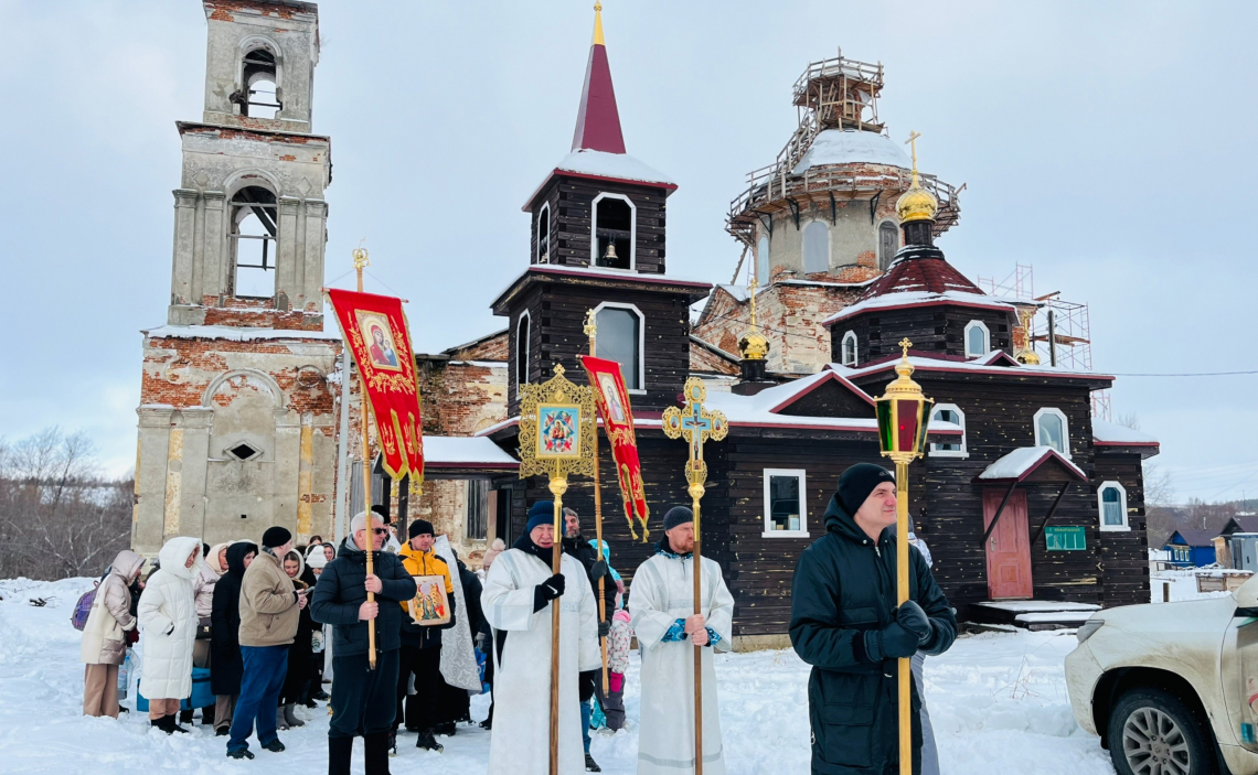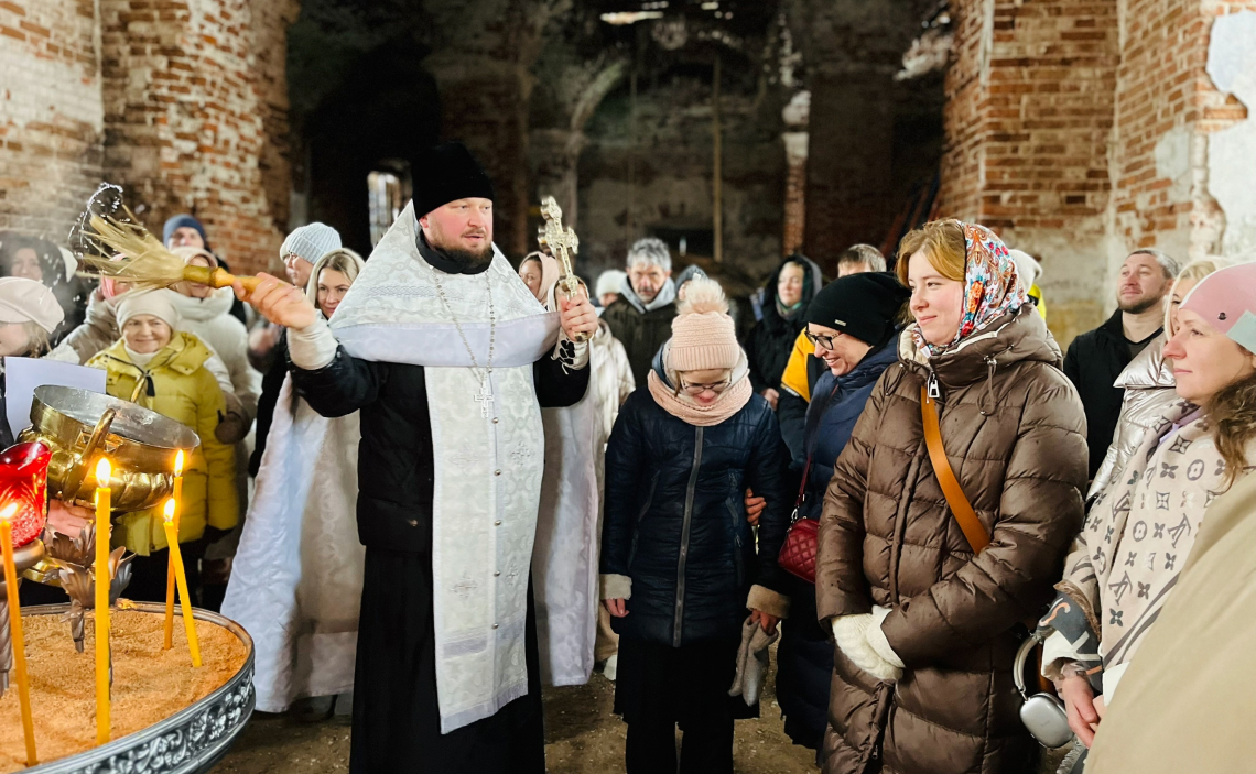 Далее все собравшиеся молились в восстанавливающемся храме о его возрождении, затем иерей Андрей Бандин поздравил всех собравшихся с праздником Крещения Господня и выразил свою надежду, что общими усилиями мы сможем сохранить храм, и что Господь не оставит нас своей милостью в этом деле.