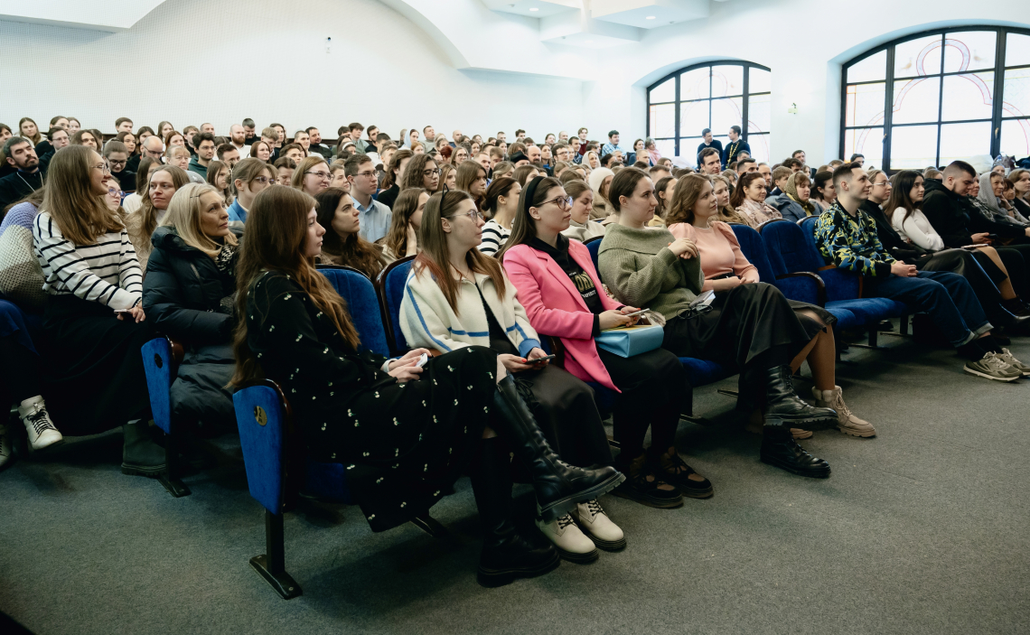 После богослужения в актовом зале Минской Духовной Академии прошла встреча с православным блогером, телеведущим, автором ютуб-проекта «12 сцена» Серафимом Сашлиевым.