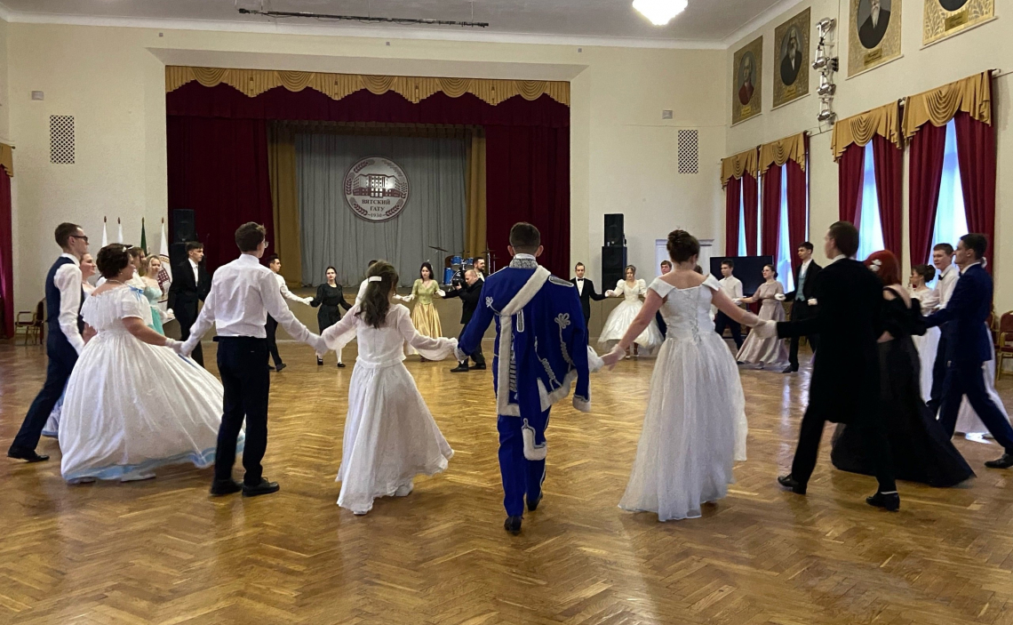 Вальс, контрданс, богемская полька — эти и многие другие танцы ребята исполняли на балу. Молодежь Уржумской Епархии представила на балу показательный танец.