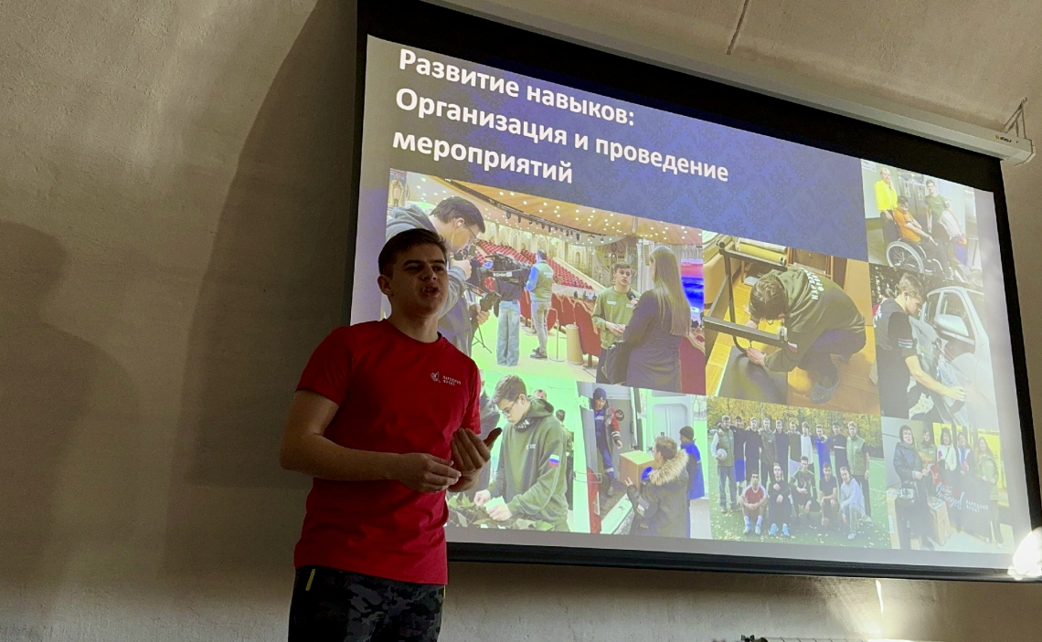 В ходе выступления Александр рассказал о своём личном опыте волонтёра, озвучил ключевые аспекты деятельности Народного фронта, ответил на вопросы аудитории.