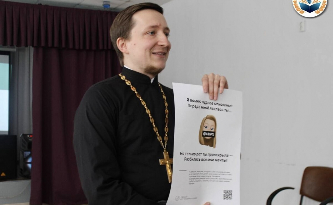 11 марта 2025 г. По благословению епископа Биробиджанского и Кульдурского Луки в рамках федерального проекта «Россия без сквернословия» клирик Биробиджанской епархии, руководитель епархиального отдела по делам молодёжи иеромонах Даниил (Пастухов) провёл поучительную беседу на тему: пагубного влияния нецензурной лексики на жизнь человека в средней школе имени героя Советского Союза Ю.В. Тварковского города Облучья.