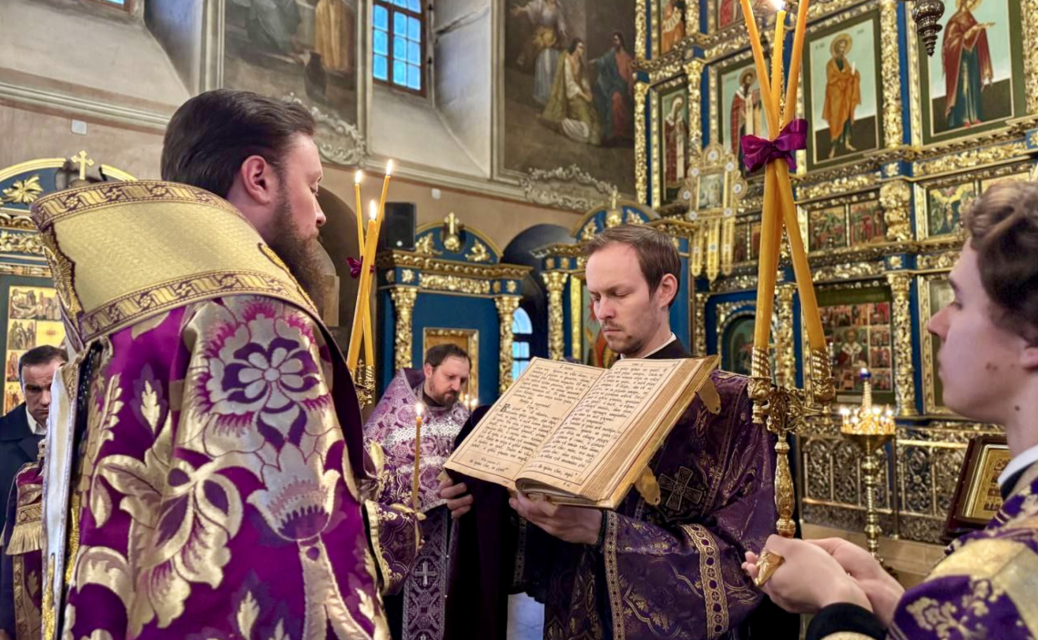 В канун Четвертой Недели Великого поста, преподобного Иоанна Лествичника, епископ Истринский Серафим совершил Всенощное бдение в Свято-Успенском соборе Крутицкого Патриаршего подворья